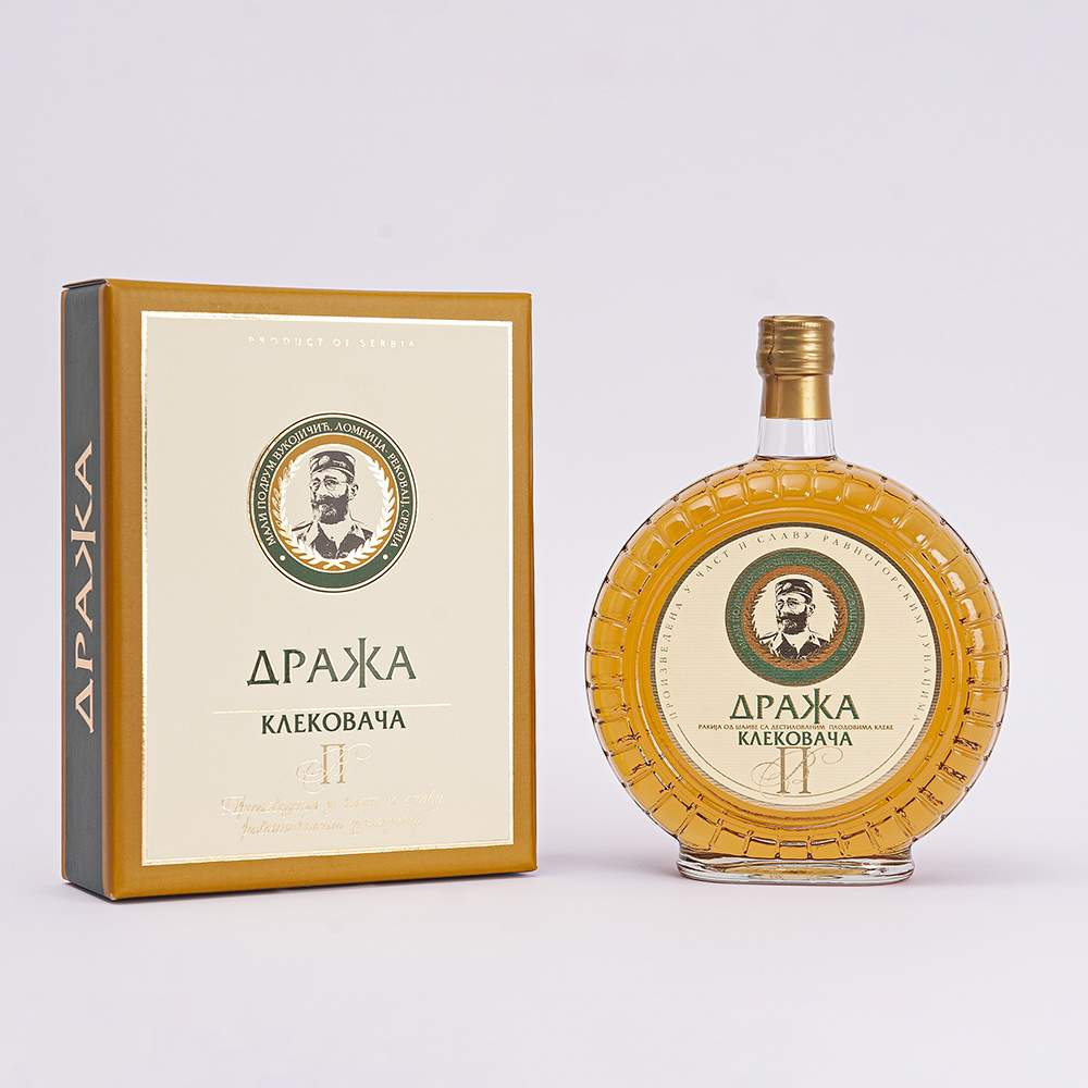 Idealan spoj šljive ranke i odabranih plodova kleke,destilovan na tradicionalnom destilacionom aparatu.Odležala u idealnom balansu finih hrastovih tonova i prefinjenih mirisa plodova kleke u periodu zrenja i fermentacije u trajanju od 24 meseci u hrastovim buradima.